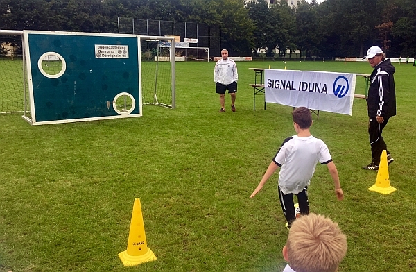 Höhepunkt des Sommercamps war der Abschlußtag am Freitag. Unter den Augen der Eltern, die zwischenzeitlich mit Kaffee und Kuchen versorgt wurden, traten die Teilnehmer zum abschließenden Torwandschiessen an. Chris Stamenkoski und Johan Kaschowitz sicherten sich jeweils im Stechen den Hauptgewinn und dürfen nun beim Bundesligaspiel von Borussia Dortmund gegen Bayern München die Bundesligaprofis beim Einlauf in den Signal Iduna Park in Dortmund begleiten.