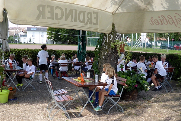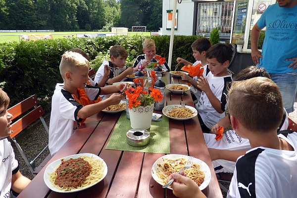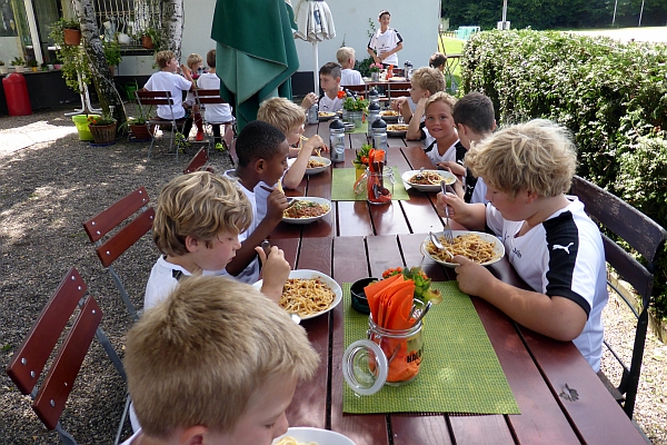 Betreut wurden die 6 – 14-jährigen Kinder von einem Team aus ehrenamtlichen Helfern des Vereins, die in den Trainingspausen für frisches Obst und gefüllte Trinkflaschen sorgten und sich auch bei kleineren Wehwehchen um die Kinder kümmerten. In den Mittagspausen wurden die Teilnehmer des Camps von Frank Pütter, dem Wirt unserer Vereinsgaststätte „Zur Germania“, mit einem warmen Mittagessen versorgt.