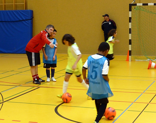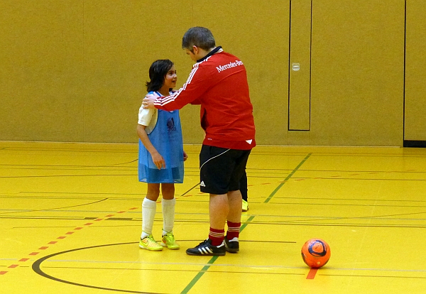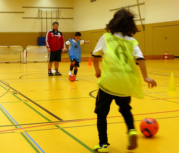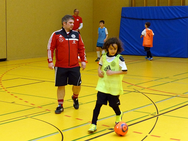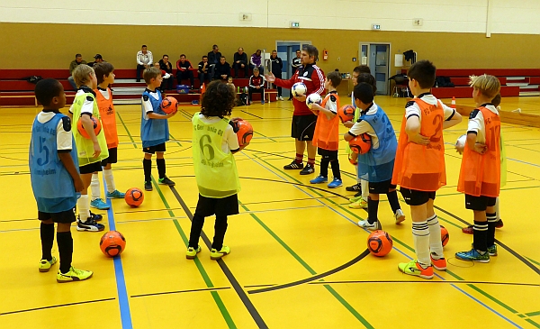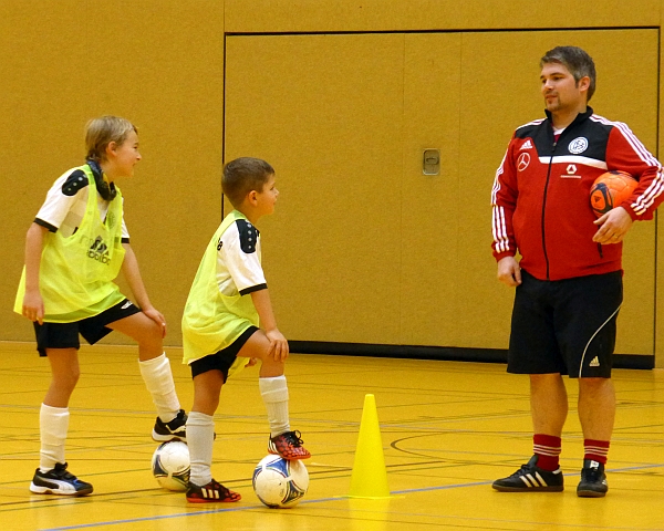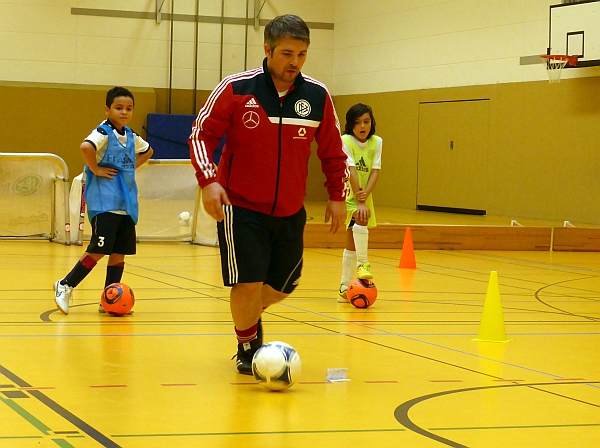 Im Mittelpunkt der Schulungseinheit stand das Spiel 4-gegen-4, bei dem die Kinder in verschiedenen Übungen und Spielformen in kleinen Gruppen mit vielen individuellen Ballkontakten alle Elemente des „großen“ Spieles intensiv üben. Nach einer praktischen Trainingsdemonstration mit 12 Kindern des Vereins standen die DFB-Verantwortlichen den Vereinstrainern für Gespräche, Fragen und weitergehende Informationen rund um die Trainingsgestaltung und Qualifizierungsangebote für die ehrenamtlichen Trainer zur Verfügung.
