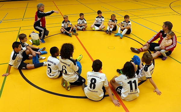 Auf Einladung der Jugendabteilung des FC Germania war am vergangenen Samstag eines von insgesamt 30 DFB-Mobilen zu Besuch in Dörnigheim. Die Kinder- und Jugendtrainer des Vereins erhielten dabei von Oliver und Edmund Bechtold, zwei eigens ausgebildeten DFB-Trainern, eine praxisnahe Weiterbildung zur entwicklungsgerechten Trainingsgestaltung im Kinder- und Jugendbereich. Ein einfacher Trainingsaufbau, wenig Wartezeiten im Trainingsablauf sowie ballorientierte Übungen sollen so nach modernster Trainingslehre ein effektives Training, bei dem der Spaß am Fußball im Vordergrund steht, ermöglichen.