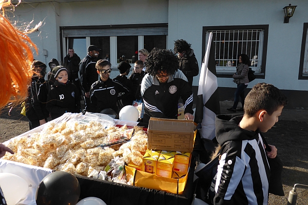Bei bestem Fastnachtswetter beteiligte sich die Jugendabteilung des FC Germania am Faschingssamstag am diesjährigen Maintaler Karnevalszug.