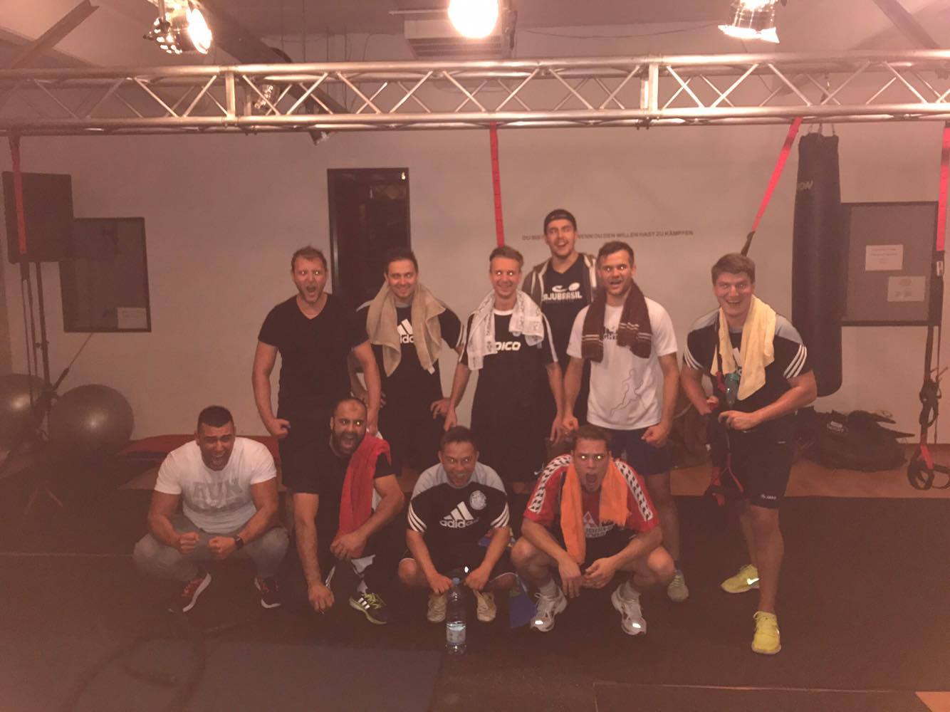 Während die 1. Mannschaft am Donnerstag Abend ihr Pokalspiel gegen Oberissigheim auf dem heimischen Geläuft erfolgreich mit 3:2 bestritt, musste sich die 2. Mannschaft nach einer Alternative zum normalen Fussballtraining umschauen. Der Sportpark VitaFitness bot uns an, am Fitnesskurs "Tabata" teilzunehmen. In einer Art Zirkeltraining durchläuft man in Zweierteams ingesamt 8 Stationen mit 2 Übungen. Nach bereits 1 Minute Belastung läuft der Schweiß und man geht an seine Belastungsgrenzen. Durch ständiges Pushen im Mannschaftsverbund und durch Anfeuerungsrufe des Trainers treibt man sich von Station zu Station und absolviert nach insgesamt 50 Min ein hartes Sportprogramm. Ein Eiweißshake sowie ein Saunagang nach dem Kurs vollendete den abwechselungsreichen Trainingsabend und die nächsten Kurse bei VitaFitness sind schon fest eingeplant.